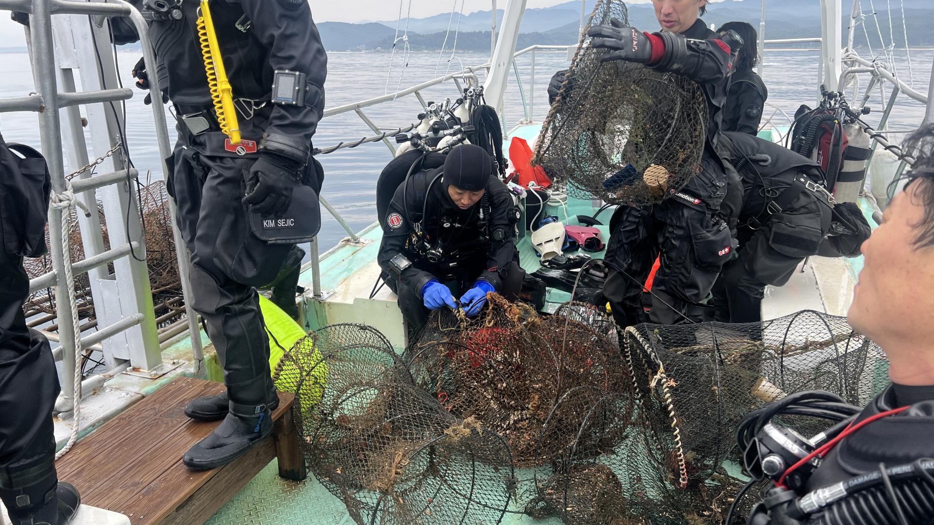 저희가 비용을 지원한 다이빙단체 '오션레인저스' 는 직접 바다 속에 잠수하여 바다에 가라앉은 폐어구와 그물 등의 쓰레기를 수거하였습니다